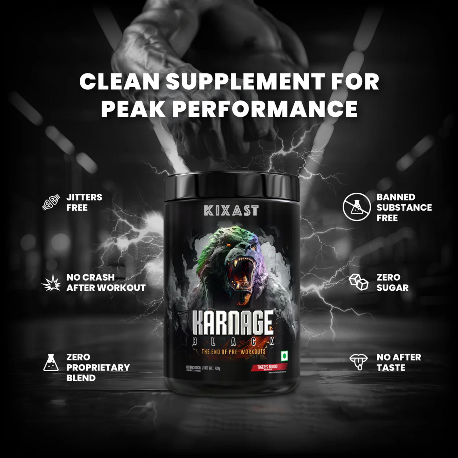 Karnage Black is your ultimate pre-workout, designed to fuel your energy, focus, and endurance for every session. With premium ingredients and no fillers, you can trust that you're getting exactly what you need to crush your goals. If you want to know more about what makes Karnage Black so effective, click the link below!